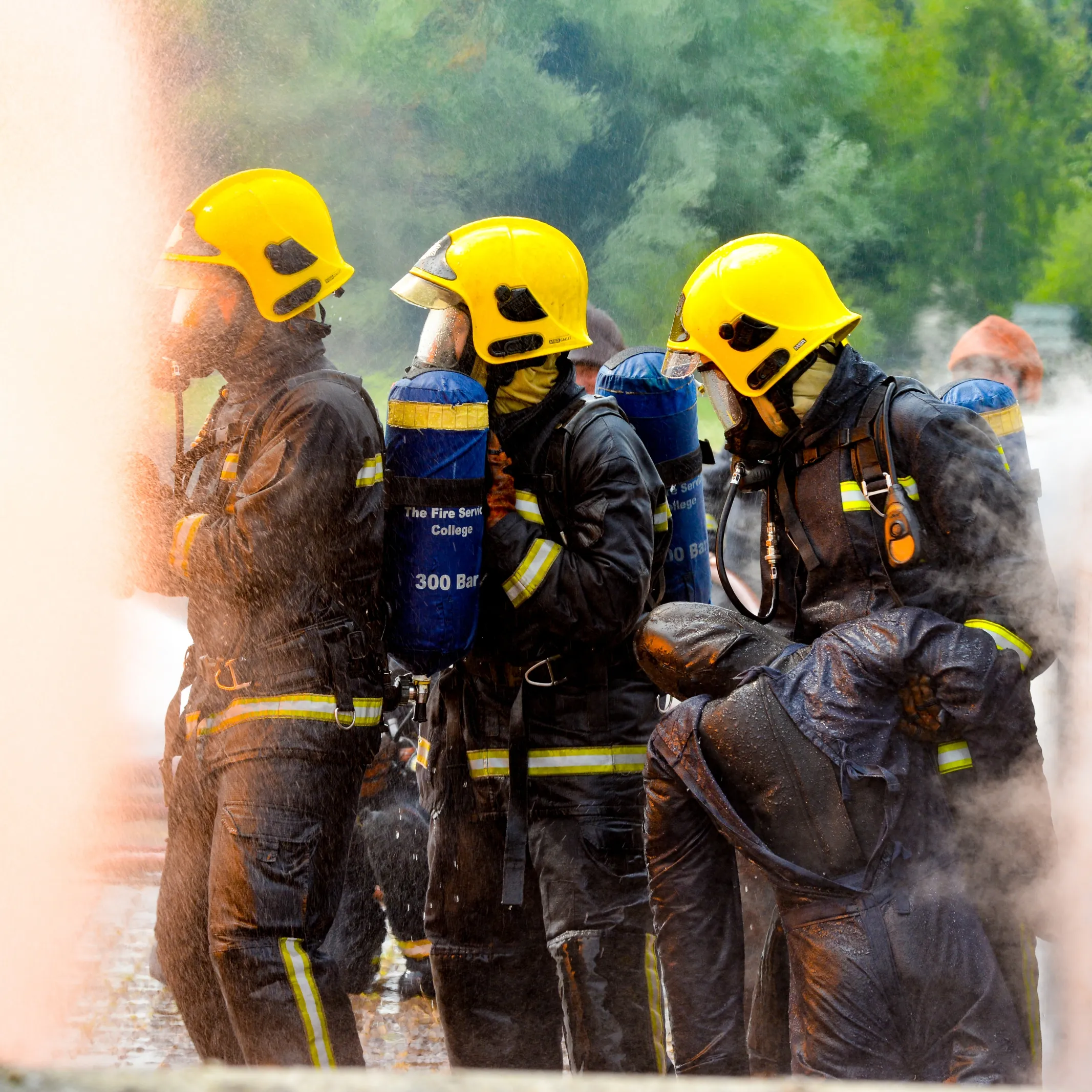 - kombinezon ochronny jest niepalny, skonstruowany z materiału stworzonego ze specjalnej mieszanki meta-aramidów i para-aramidów oraz wzmocnionego meta-aramidową taśmą dla zwiększenia odporności na ścieranie, wyposażony w 20 mm wiązania, gdyż standardowe zapięcia na rzepy topią się w wysokiej temperaturze